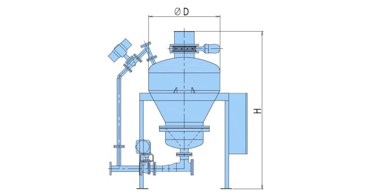 | 輸送能力 (kg/h) | バッチ受入量 (ℓ/バッチ) | 高圧エア消費量 (ℓ/min) | コンプレッサ (kW) | D | d | H | |