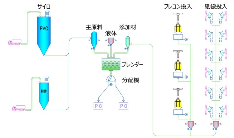 - 電線被覆に使用するPVCコンパウンドの製造設備